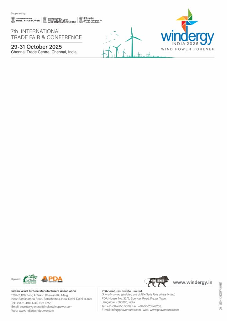 The 7th edition of Windergy India 2025, the exclusive international trade fair and conference for the wind energy sector in the country, is scheduled to take place this October from 29-31 at the Chennai Trade Centre. As India is making giant strides in wind energy generation, the event […]